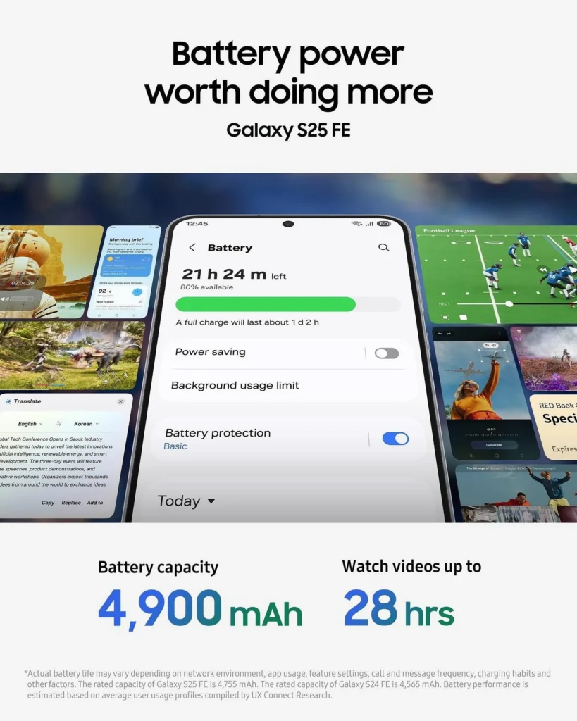 La batería del Galaxy S25 FE es de 4 900 mAh, una capacidad generosa para llegar al final del día incluso con uso intenso.