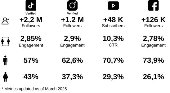 He has collaborated in campaigns with internationally recognized brands and has attended as press media and content creator to renowned events such as CES in Las Vegas, Mobile World Congress in Barcelona and IFA in Germany, in addition to attending launches and events of companies such as Samsung, Sonos, XBox, Chery, OPPO, Xiaomi, Huawei, Honor, among others.
